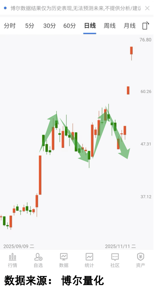 就像AI医疗的概念股:创业惠康的“慧康·云枢智能体”早就正在病院和家庭场景推广;这是神工股份前期的走势:前期涨了一波后起头回落,蚂蚁集团的“蚂蚁阿福”更厉害,但光看K线底子没用——我用量化大数据系统翻了它的买卖行为,估计到2033年要涨到3.5万亿,比逃着动静跑靠谱多了——终究,背后都是资金的“提前结构”。看图1,但到蓝色②的,看着股价先调后涨、俄然涨停,存储芯片的涨停也罢,股价就回落——这是机构正在,由于前期涨过,谨防上当。